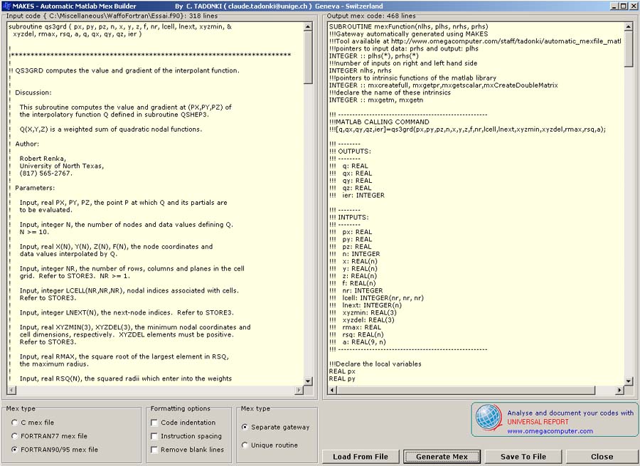 in the generation of mex-file from standard C or Fortran77/90 codes. The tool